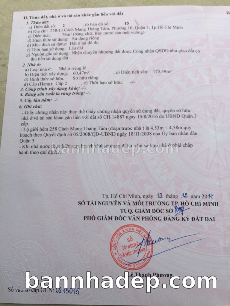 Bán nhà 258/13 Cách Mạng Tháng 8 phường 01 quận 3