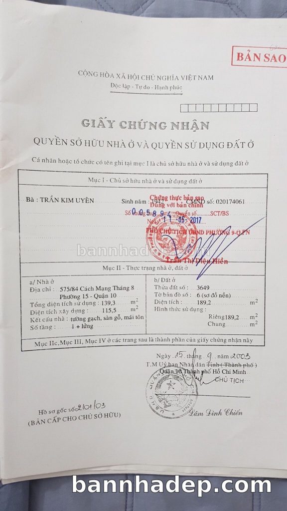 Bán nhà 575/23 Cách Mạng Tháng 8 phường 01 quận 10
