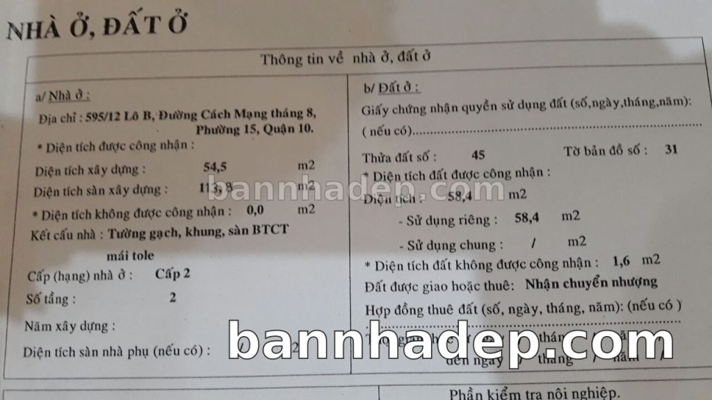 Bán nhà 595/13F Cách mạng tháng 8 phường 01 quận 10