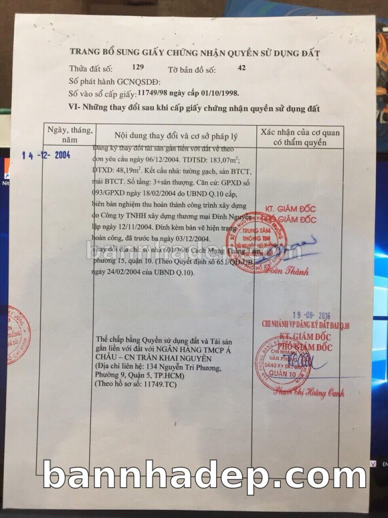 Bán nhà 601/105 Cách Mạng Tháng 8 phường 01 quận 10