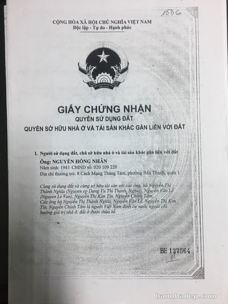 Bán nhà 8 Cách Mạng Tháng 8 phường Bến Thành quận 1