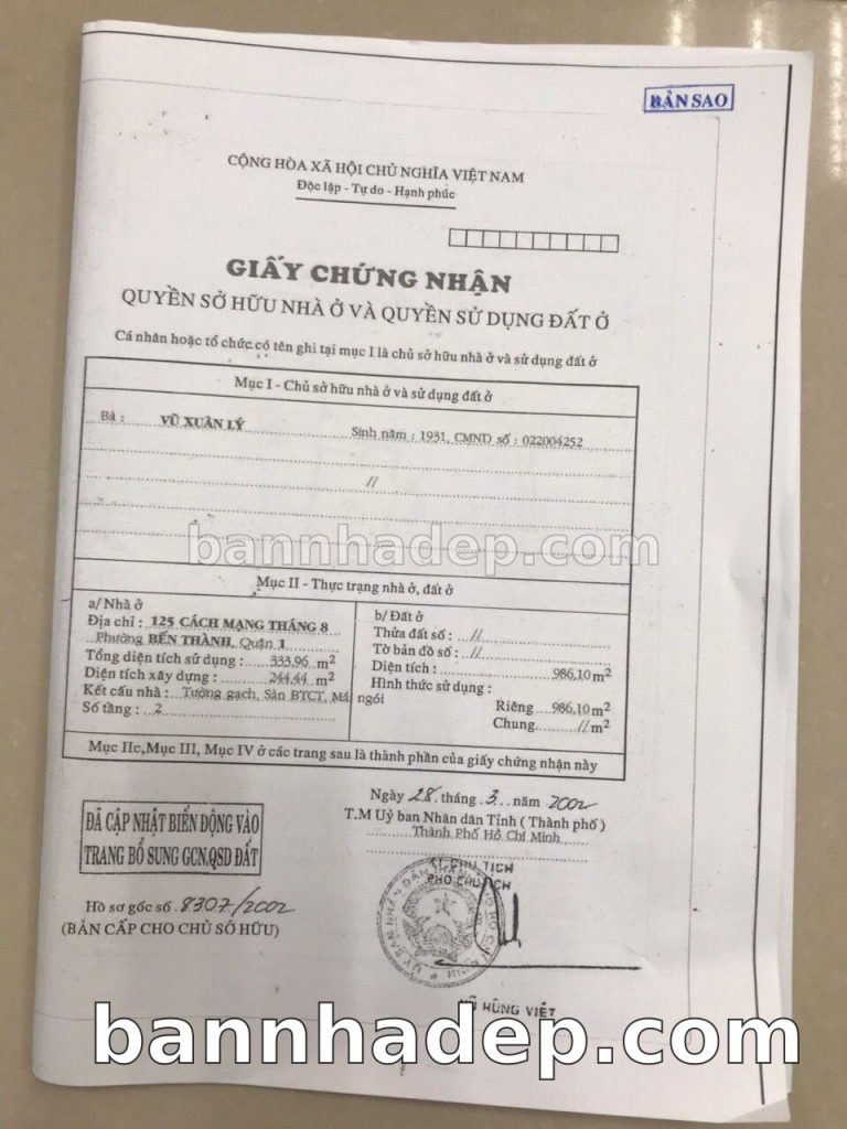 Bán nhà 125 Cách Mạng Tháng 8 phường Bến Thành quận 1