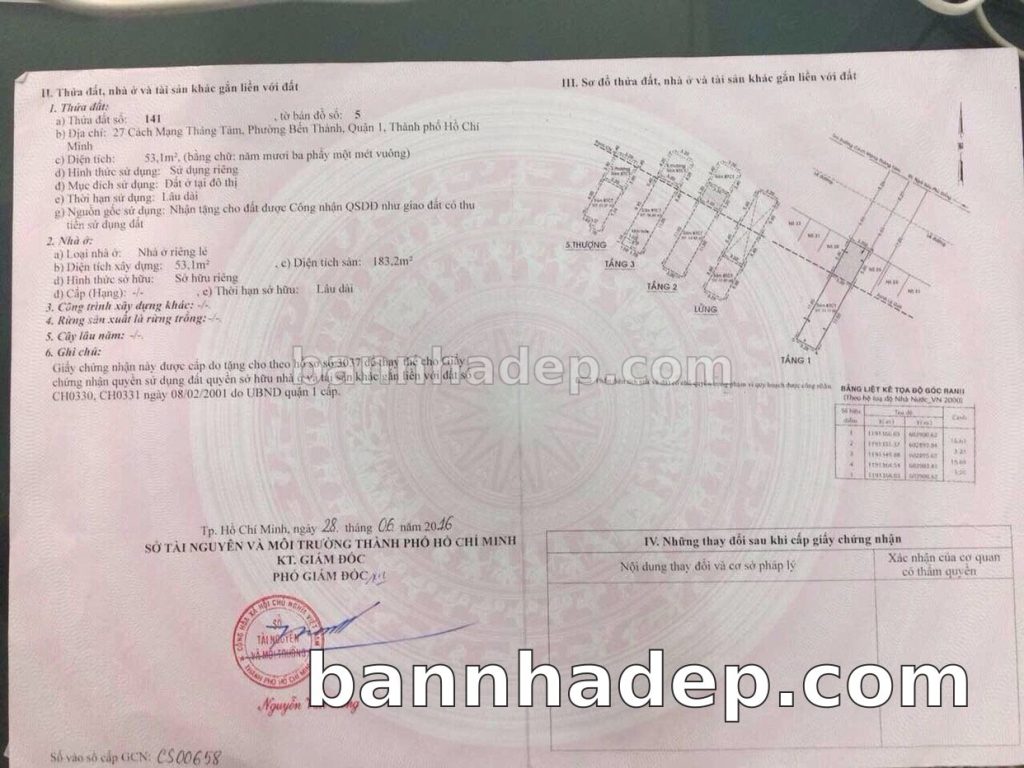 Bán nhà 27 Cách Mạng Tháng 8 phường Bến Thành quận 1