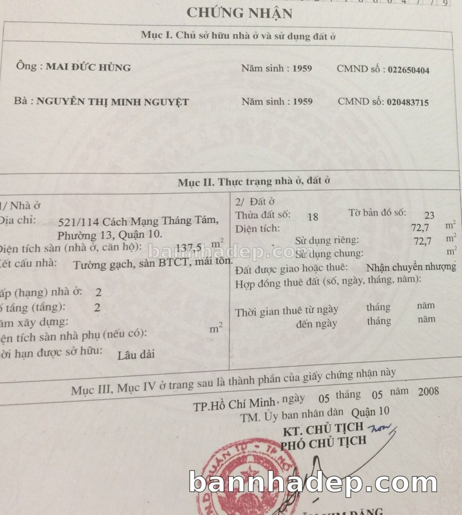 Bán nhà 521/114 Cách Mạng Tháng Tám phường 01 quận 10