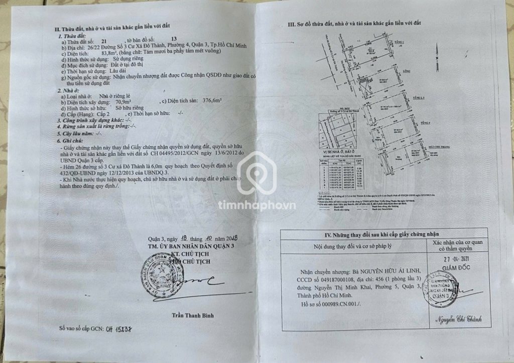 Bán nhà 26/22 Cư xá Đô Thành phường 4 quận 3