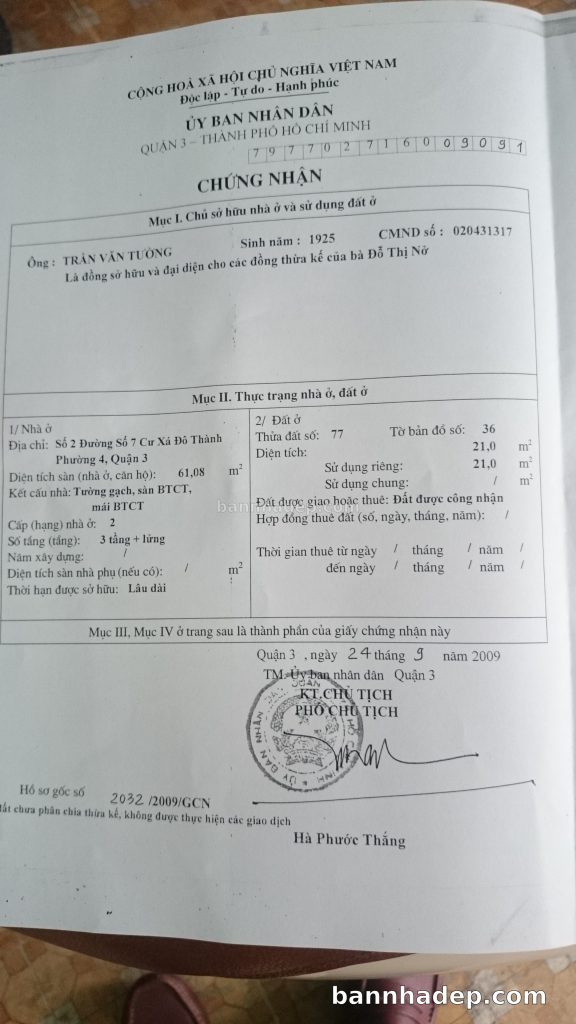Bán nhà 2/7 Cư Xá Đô Thành phường 04 quận 3