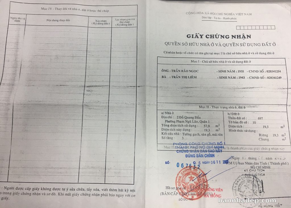 Bán nhà 1A Đỗ Quang Đẩu phường Phạm Ngũ Lão quận 1
