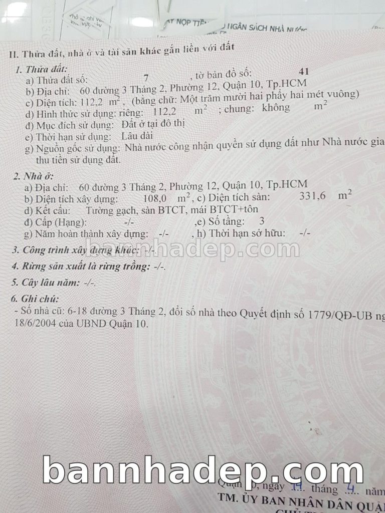 Bán nhà 58 Đường 3 tháng 2 phường 01 quận 10