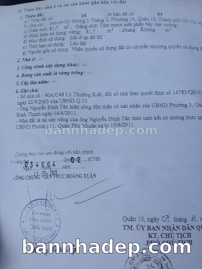 Bán nhà 666/14 Đường 3 Tháng 2 phường 01 quận 10
