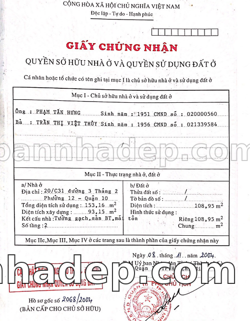 Bán nhà 20/C31 Đường 3 Tháng 2 phường 01 quận 10