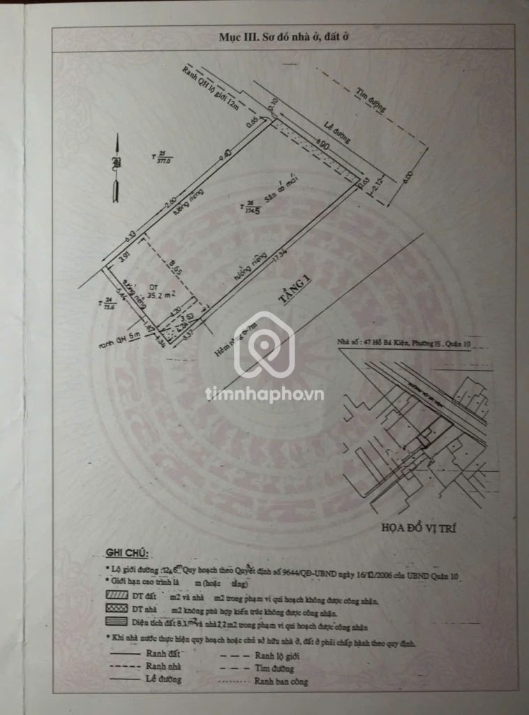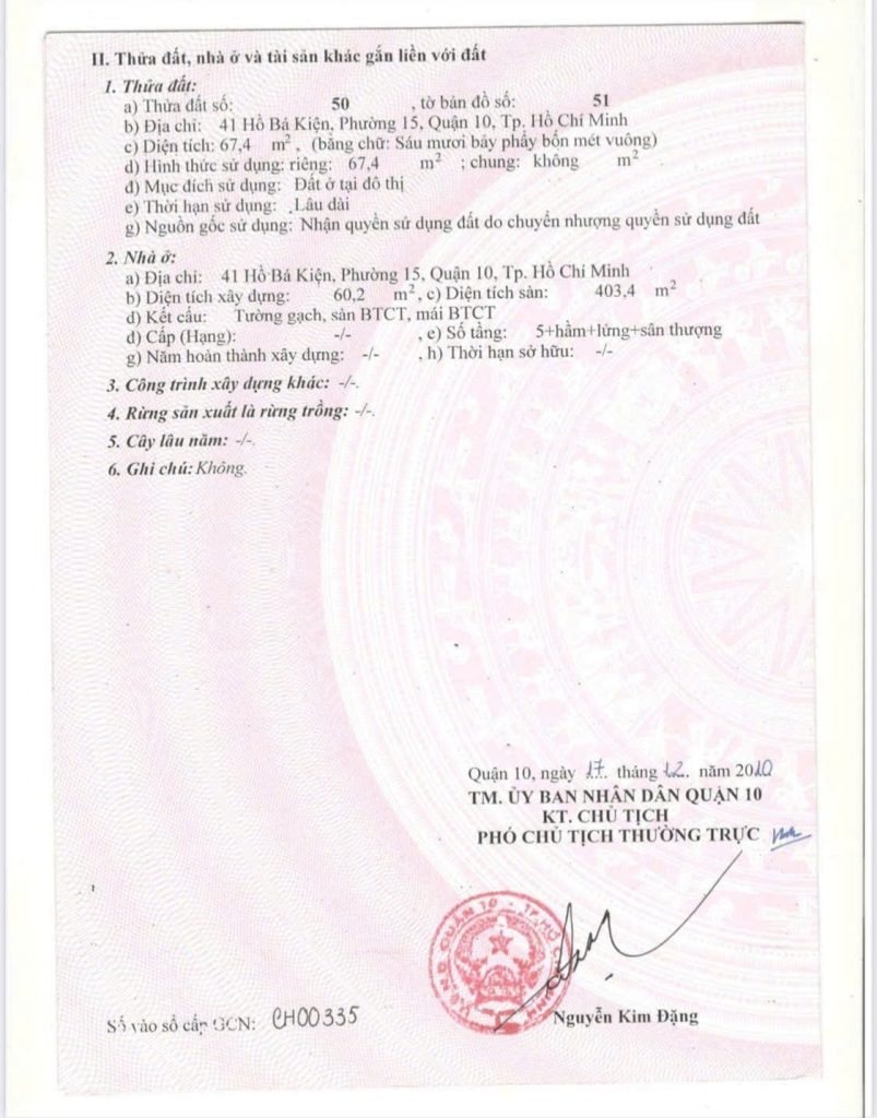 Bán nhà 69Thửa: 406Tờ: 52 Hồ Bá Kiện phường 15 quận 10