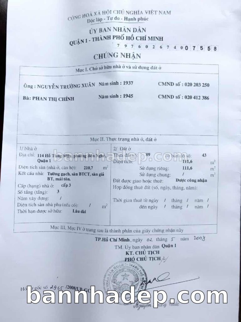 Bán nhà 114 Hồ Tùng Mậu phường Bến Nghé quận 1
