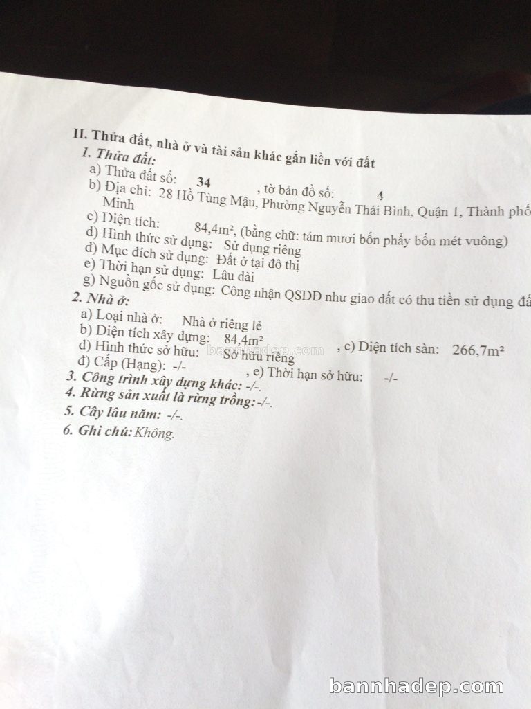 Bán nhà 85/1 Hồ Tùng Mậu phường Bến Nghé quận 1