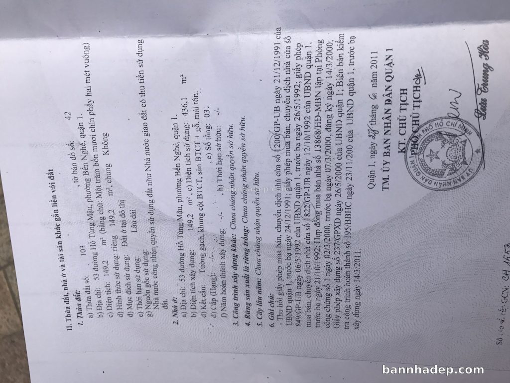 Bán nhà 93/6Thửa: 87Tờ: 42 Hồ Tùng Mậu Bến Nghé quận 1