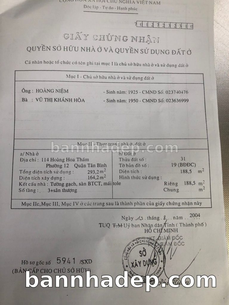 Bán nhà 114 Hoàng Hoa Thám phường 01 quận Bình Thạnh