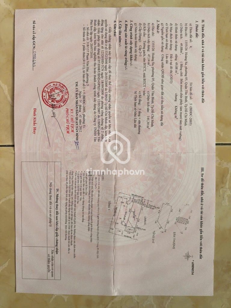 Bán nhà 1355/26 Hoàng Sa phường 2 quận Tân Bình