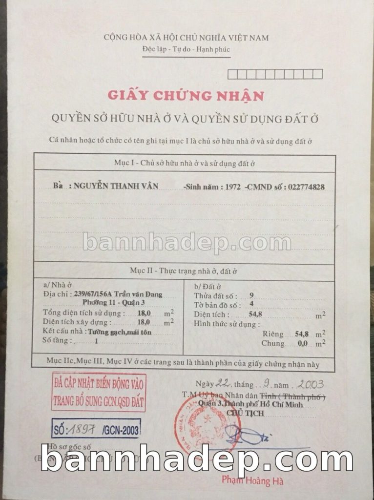Bán nhà 1103 Hoàng Sa phường 01 quận 3