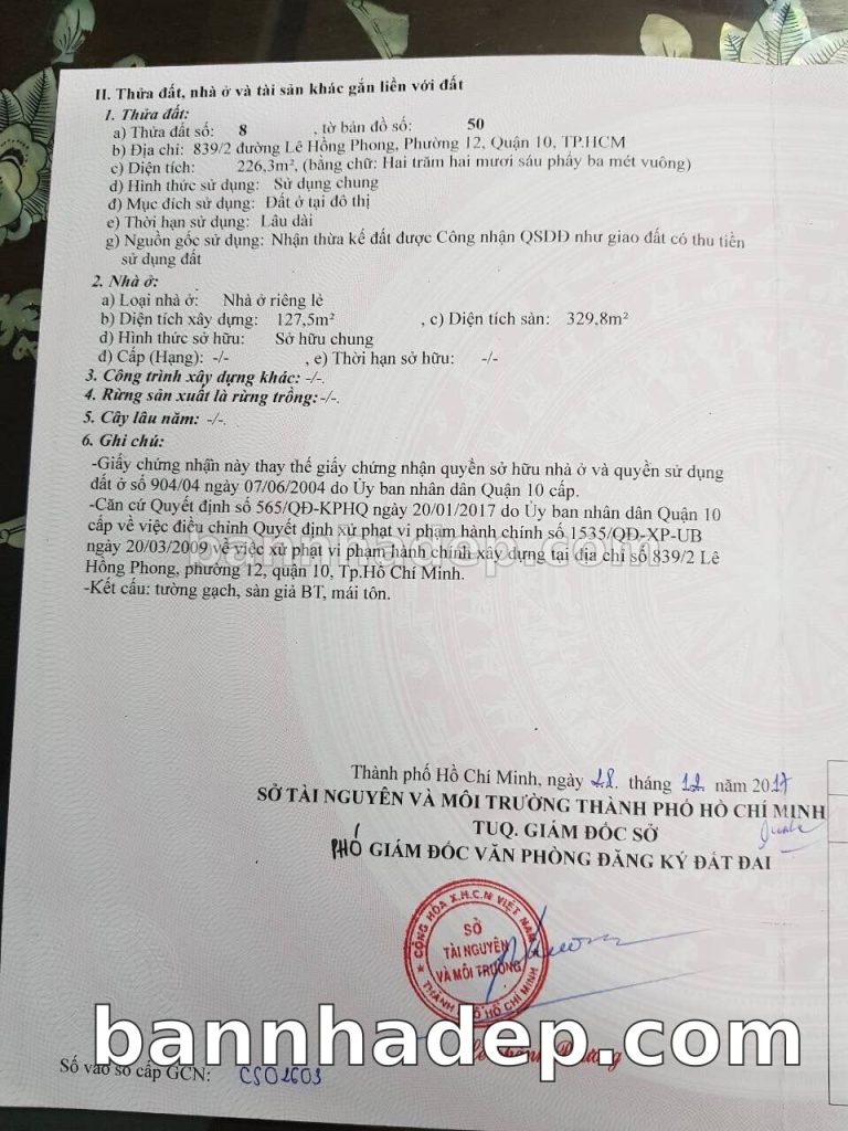Bán nhà 781/C1-781/C2 Lê Hồng Phong phường 01 quận 10