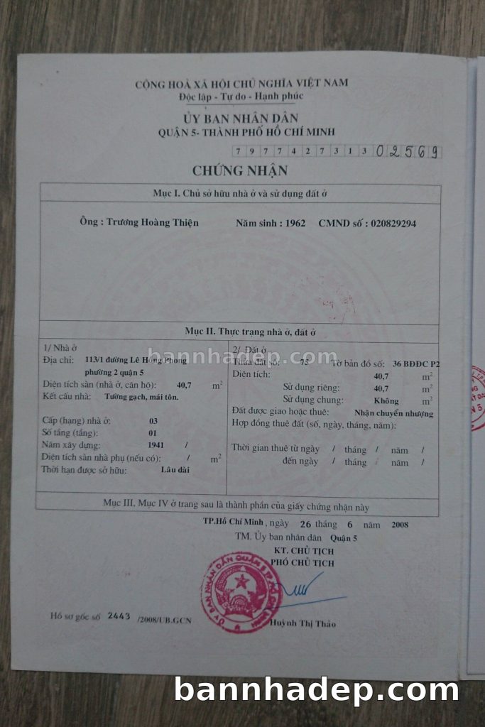 Bán nhà 131/1 Lê Hồng Phong phường 02 quận 5
