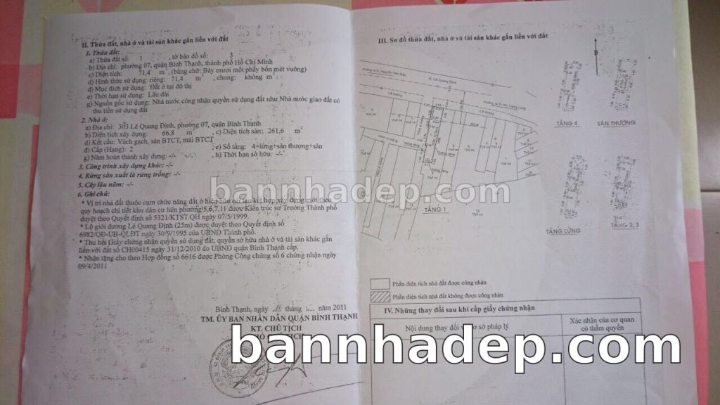Bán nhà 412 Lê Quang Định phường 01 quận Bình Thạnh