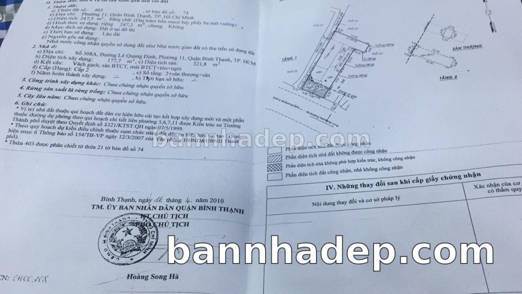 Bán nhà 308A Lê Quang Định phường 01 quận Bình Thạnh