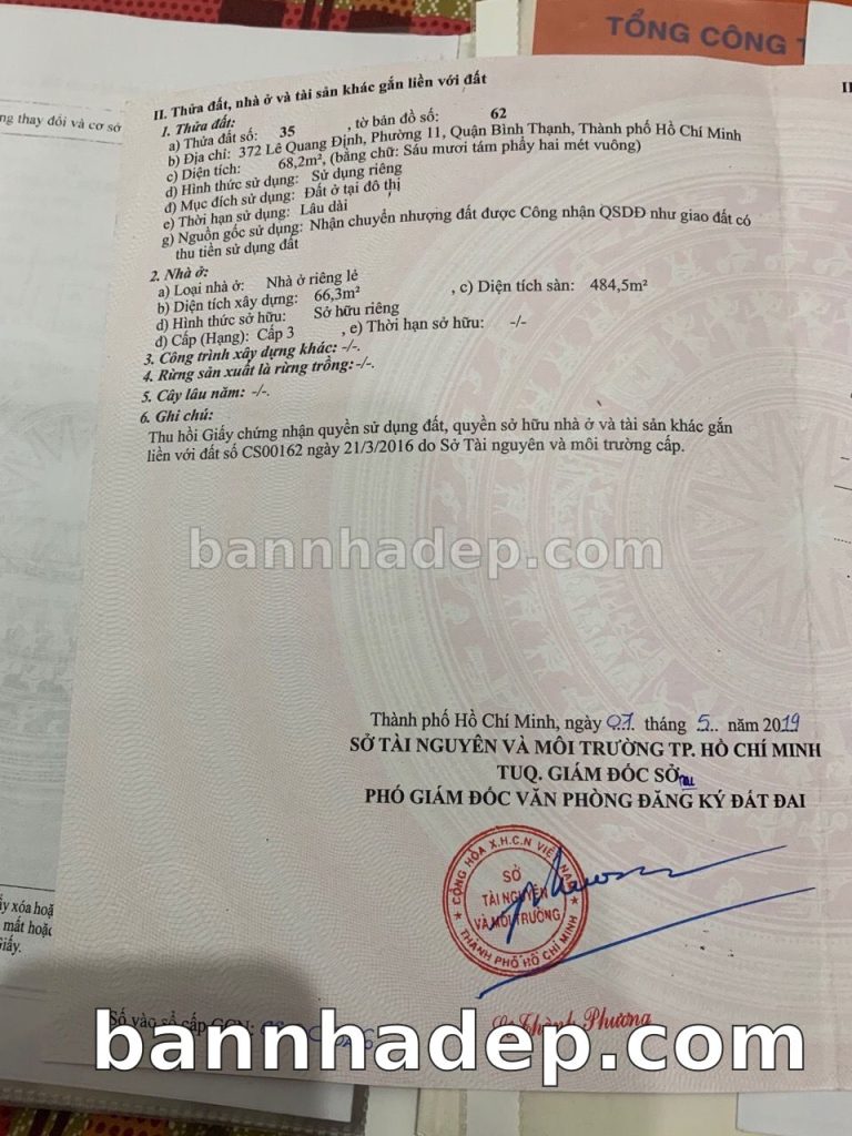Bán nhà 372 Lê Quang Định phường 01 quận Bình Thạnh