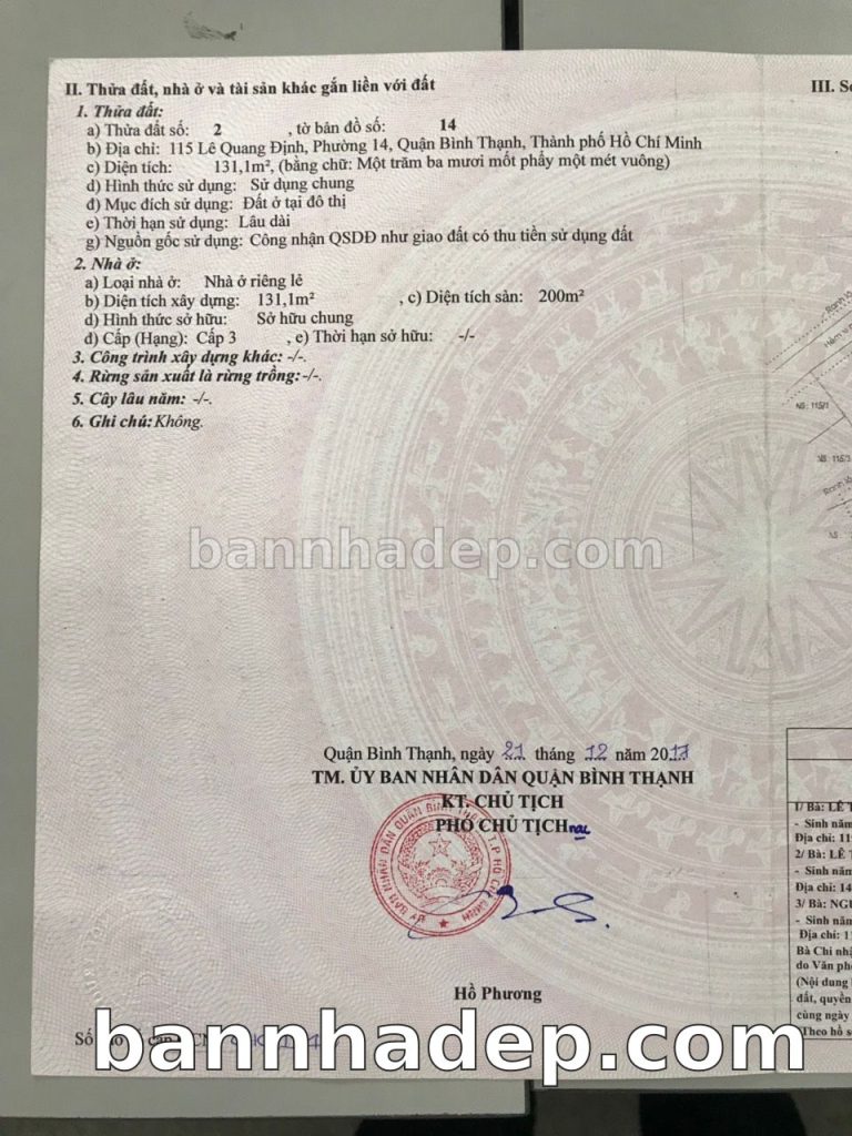 Bán nhà 115 Lê Quang Định phường 01 quận Bình Thạnh