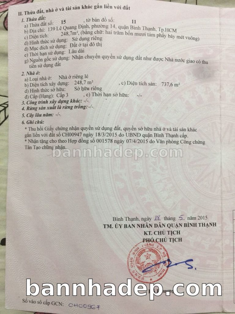 Bán nhà 139 Lê Quang Định phường 01 quận Bình Thạnh