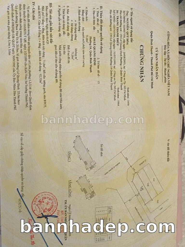 Bán nhà 150 Lê Quang Định phường 01 quận Bình Thạnh