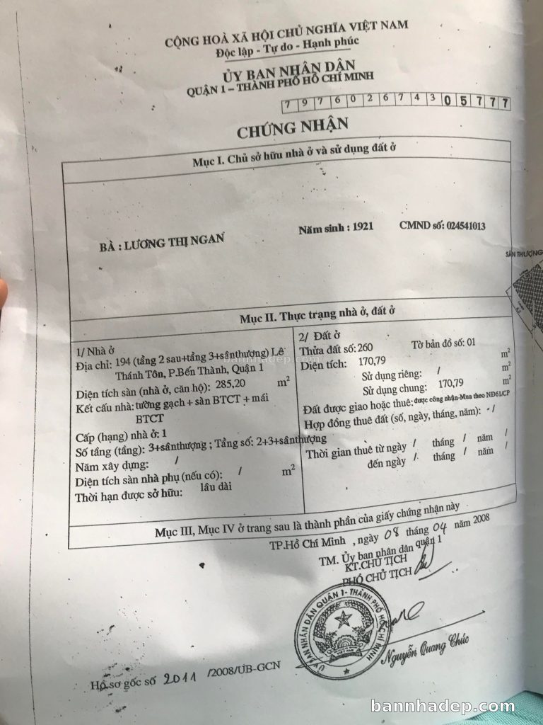 Bán nhà 194 Lê Thánh Tôn phường Bến Thành quận 1