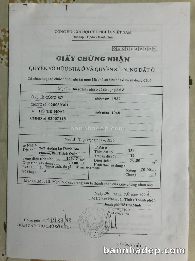 Bán nhà 262 Lê Thánh Tôn phường Bến Thành quận 1