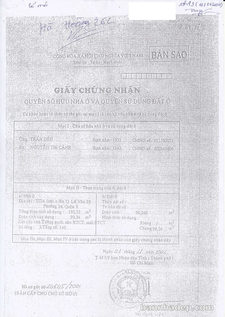 Bán nhà 522A Lê Văn Sỹ phường 01 quận 3