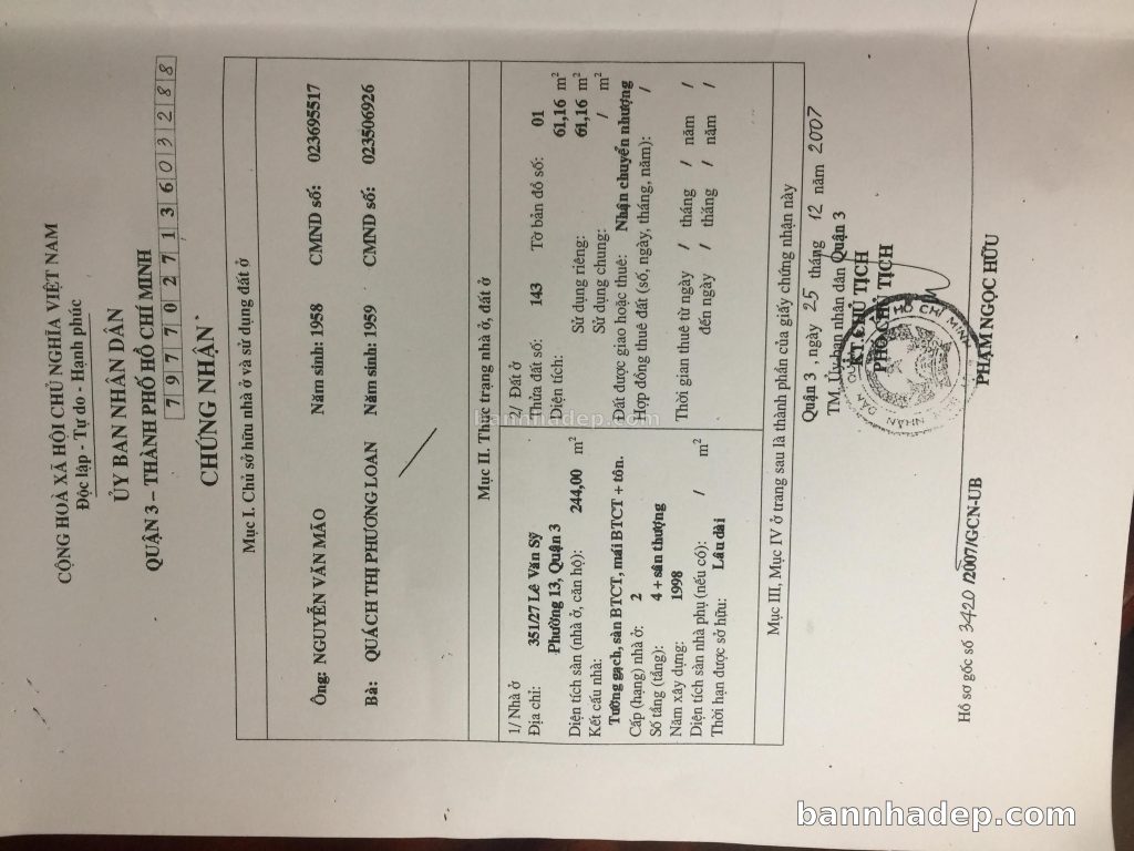 Bán nhà 204 Lê Văn Sỹ phường 01 quận 3