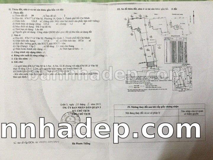 Bán nhà 476/17 Lê Văn Sỹ phường 01 quận 3