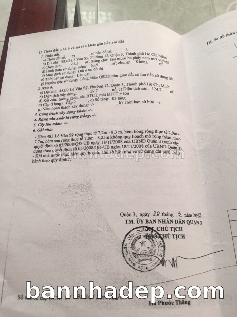 Bán nhà 483/2 Lê Văn Sỹ phường 01 quận 3