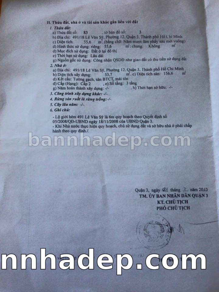 Bán nhà 491/65 Lê Văn Sỹ phường 01 quận 3
