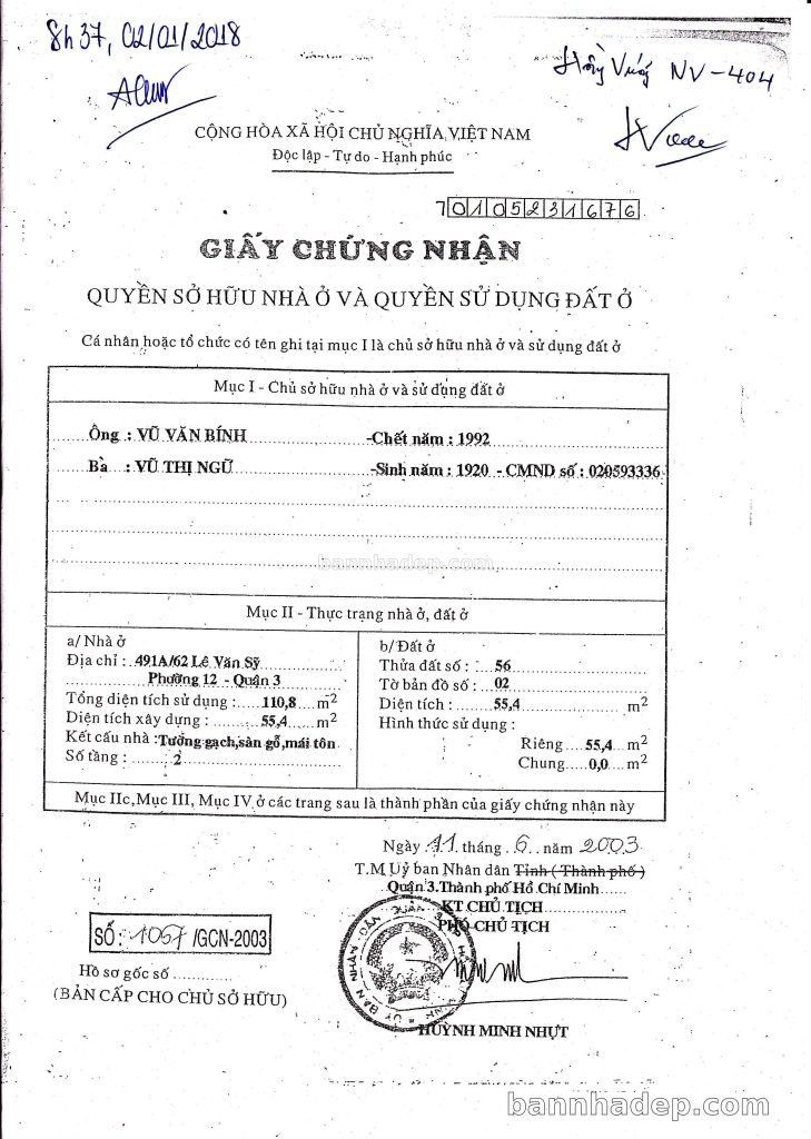 Bán nhà 491/18 Lê Văn Sỹ phường 01 quận 3