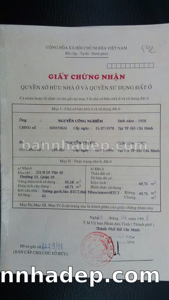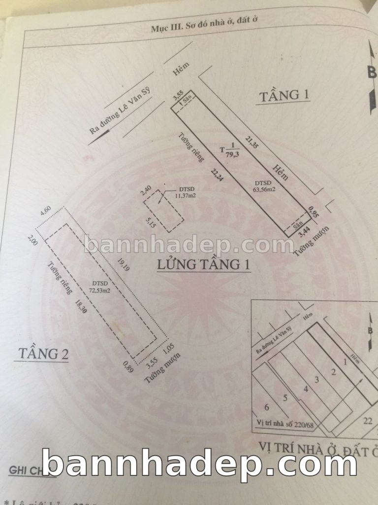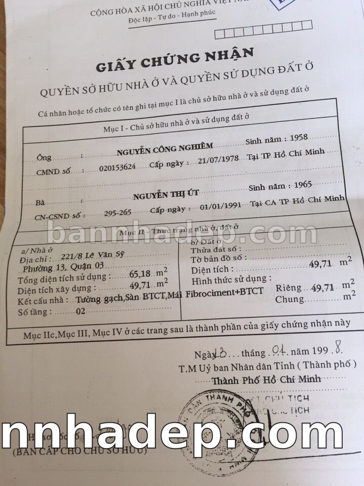Bán nhà 220/68 Lê Văn Sỹ phường 01 quận 3