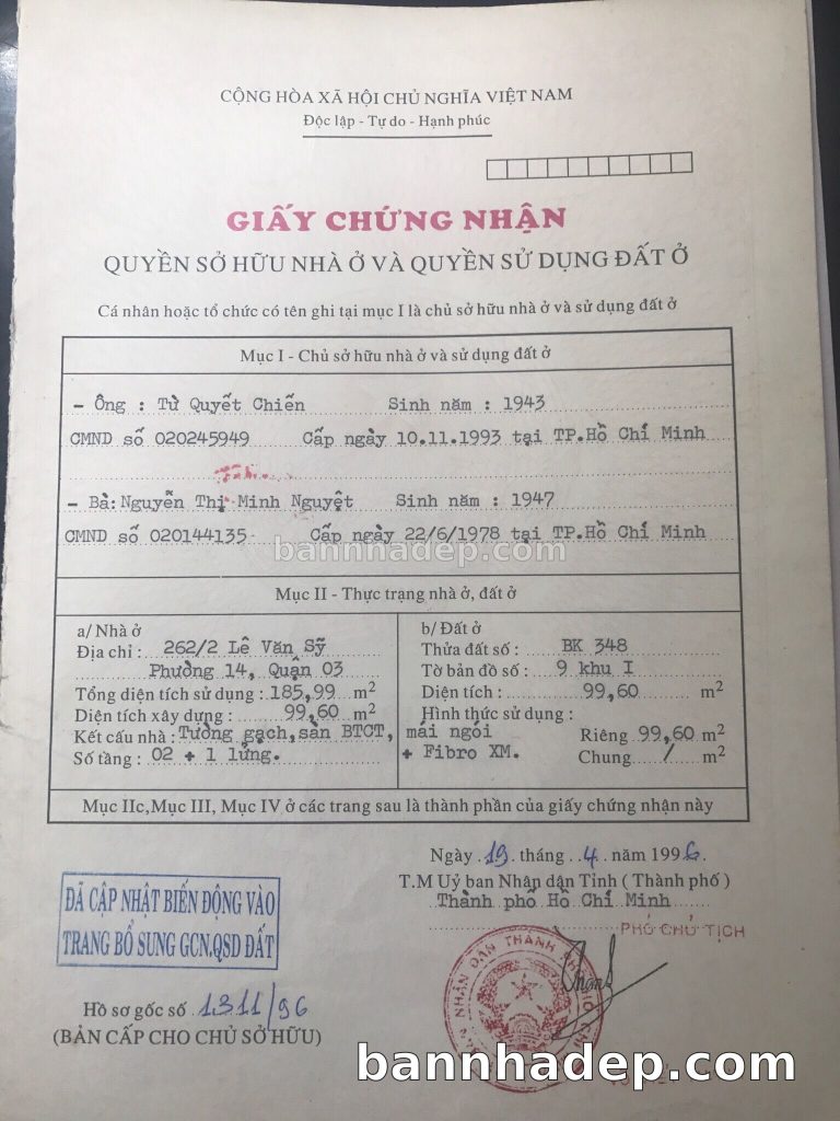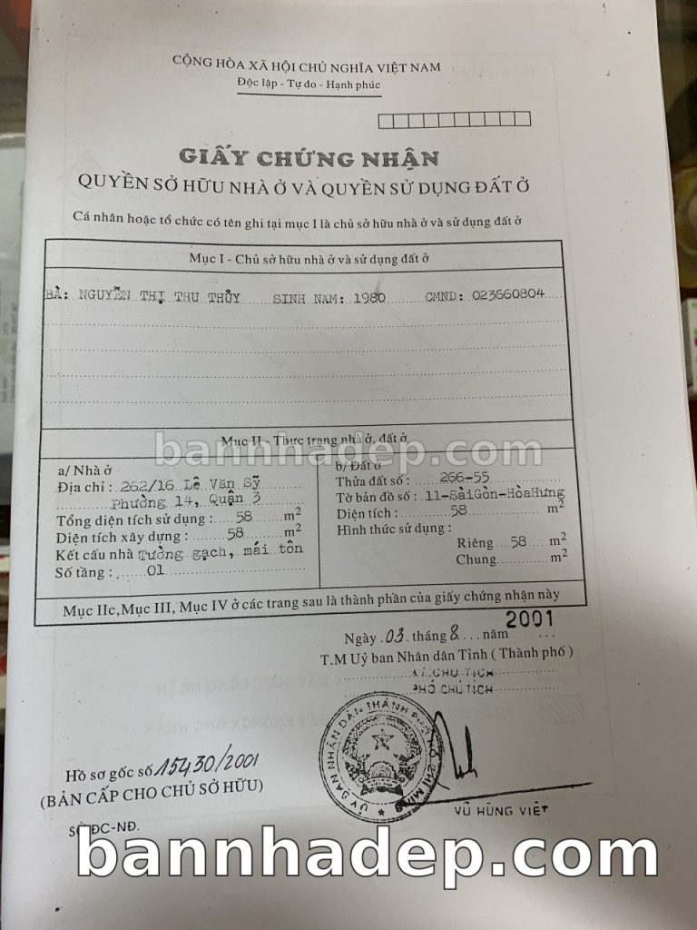 Bán nhà 262/2 Lê Văn Sỹ phường 01 quận 3