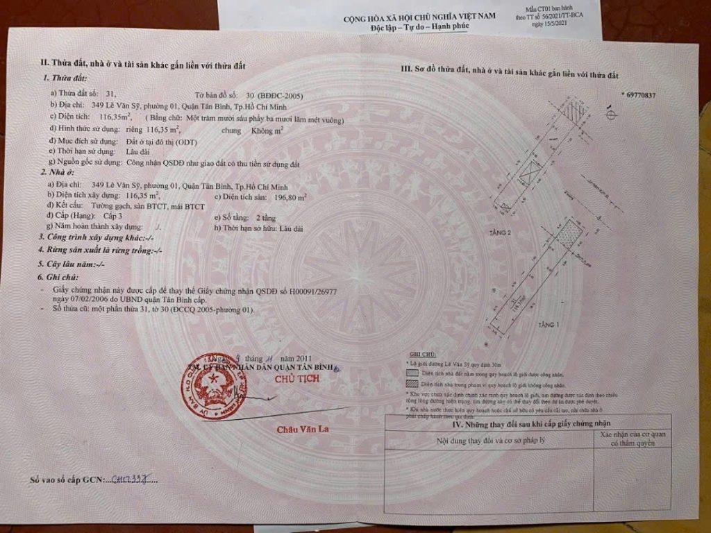 Bán nhà 349 Lê Văn Sỹ phường 1 quận Tân Bình