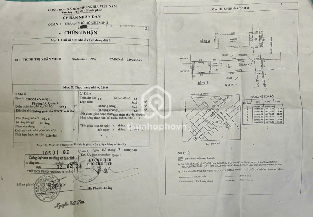 Bán nhà 301 Lê Văn Sỹ phường 11 quận 3