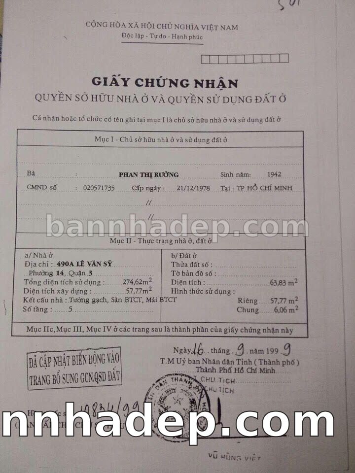 Bán nhà 490A Lê Văn Sỹ phường 01 quận 3