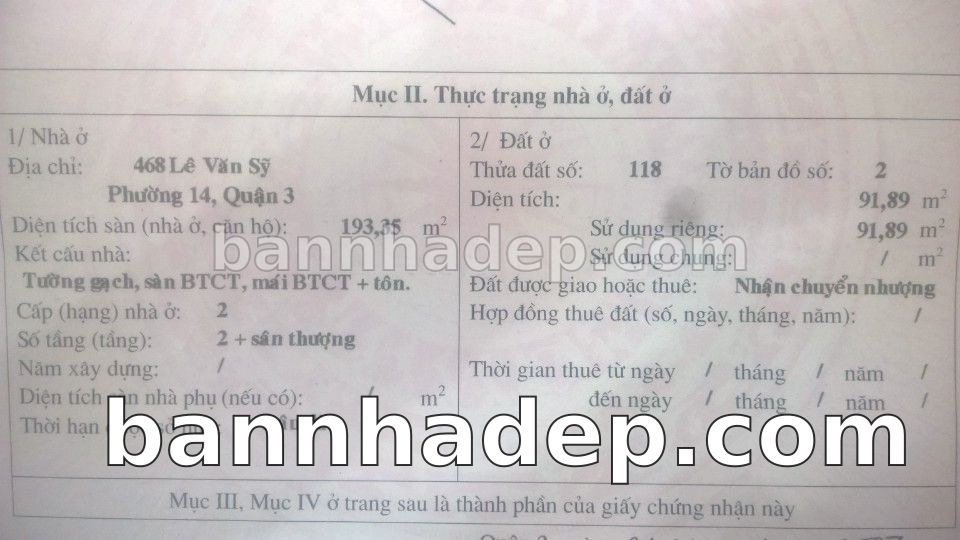 Bán nhà 468 Lê Văn Sỹ phường 01 quận 3