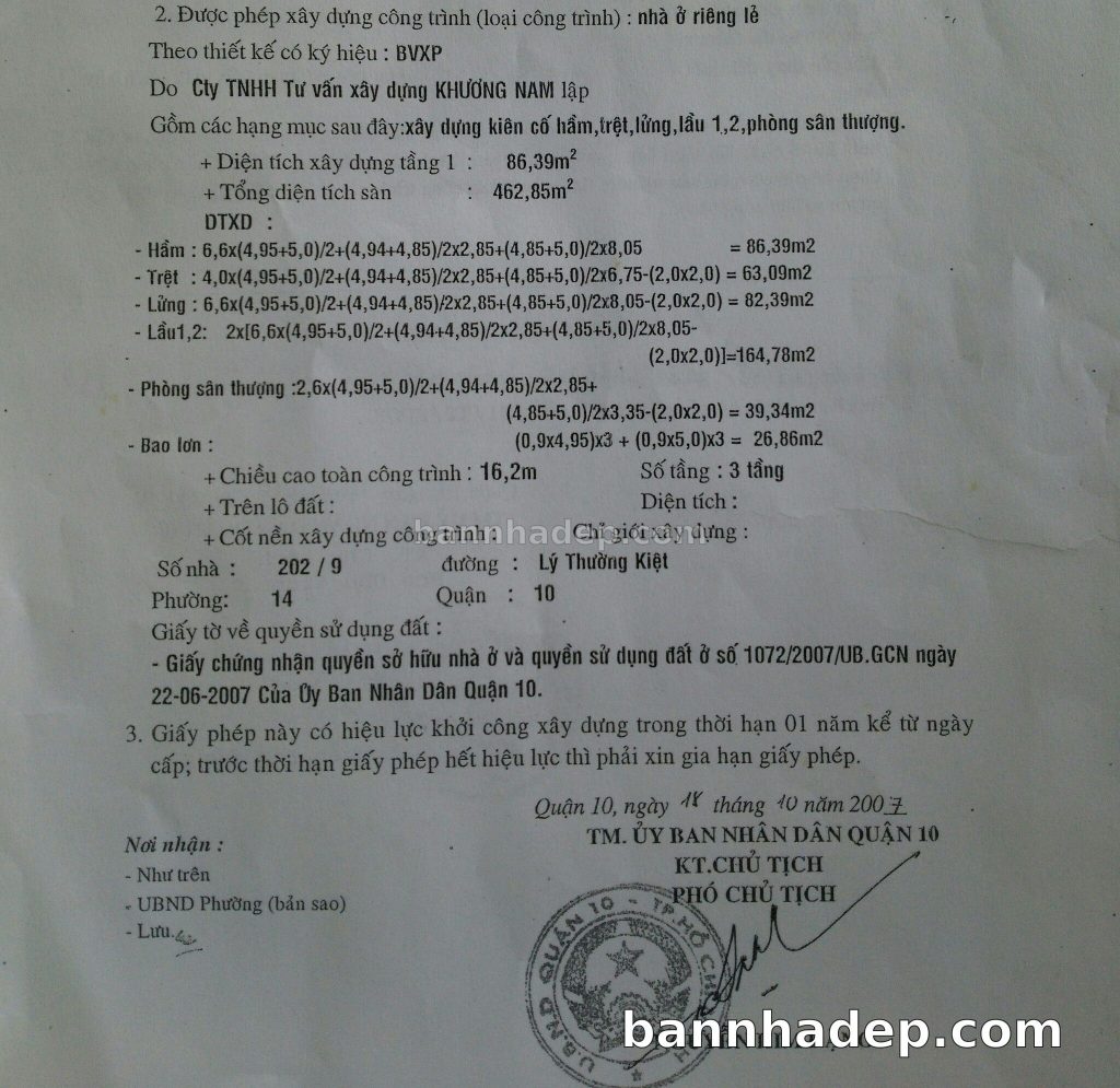 Bán nhà 202/9 Lý Thường Kiệt phường 01 quận 10
