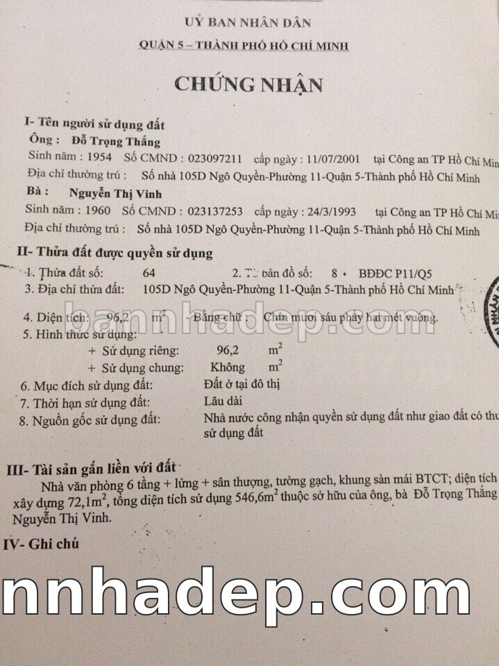Bán nhà 98 Ngô Quyền phường 07 quận 5