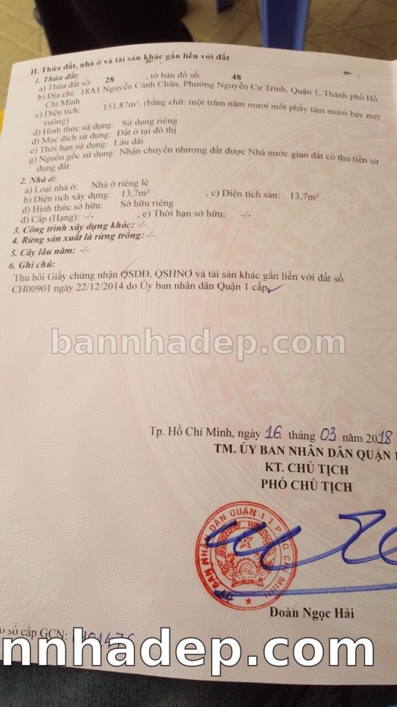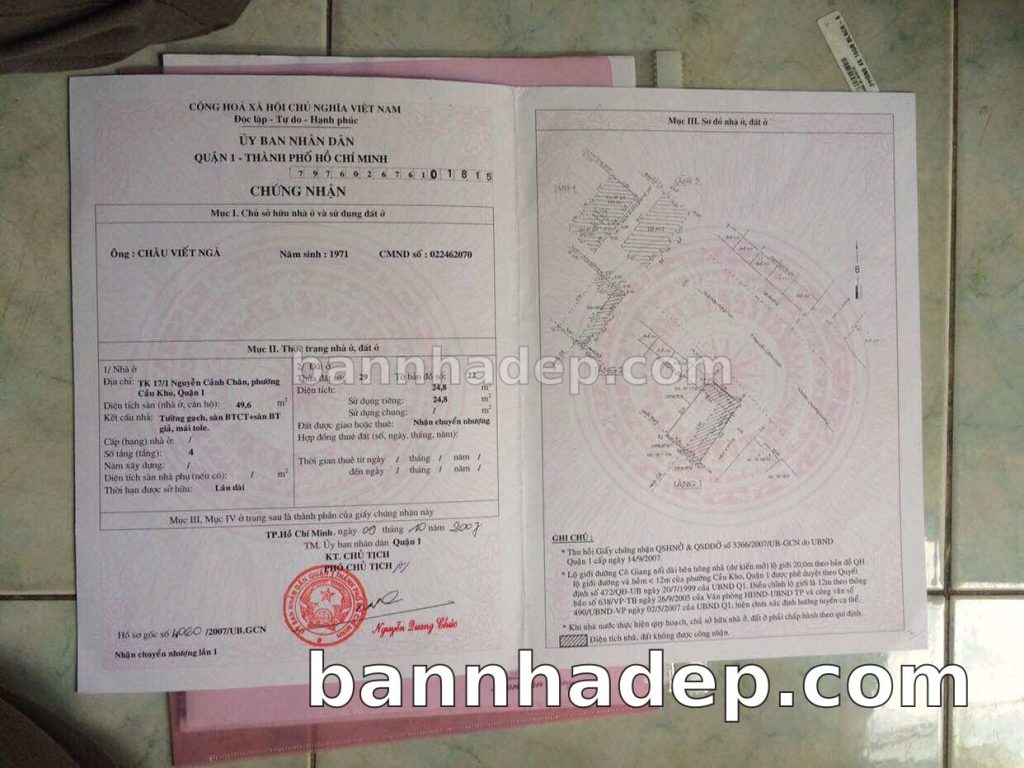 Bán nhà 18A1 Nguyễn Cảnh Chân phường Nguyễn Cư Trinh quận 1