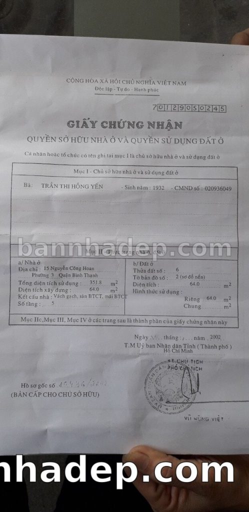 Bán nhà 15 Nguyễn Công Hoan phường 03 quận Bình Thạnh
