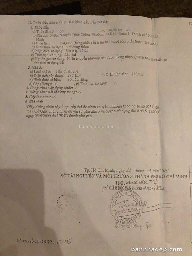 Bán nhà 54Bis Nguyễn Đình Chiểu phường Đa Kao quận 1