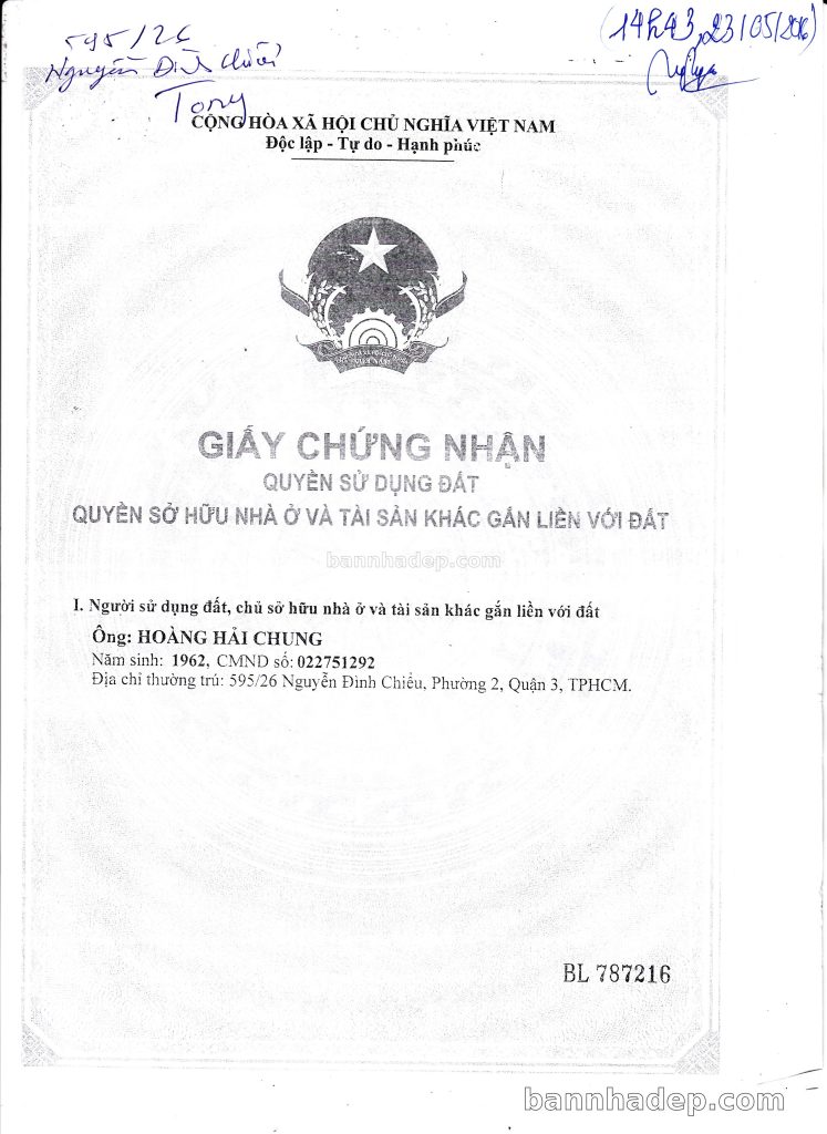 Bán nhà 595/26 Nguyễn Đình Chiểu phường 02 quận 3