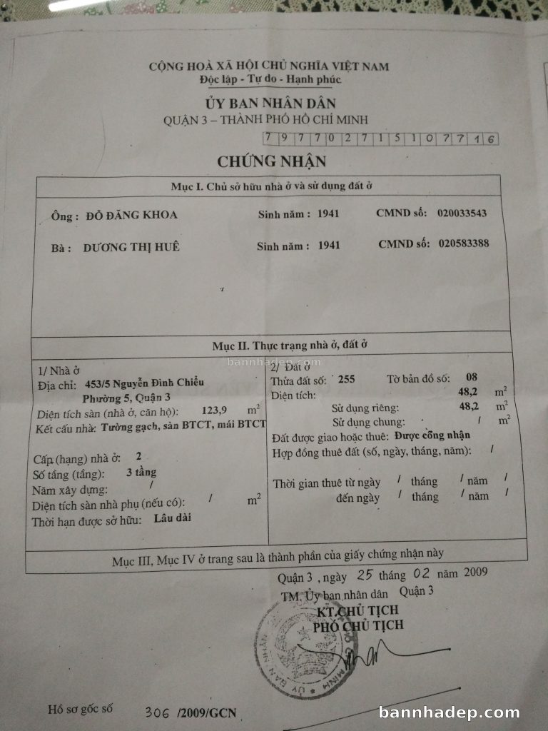 Bán nhà 453/5 Nguyễn Đình Chiểu phường 05 quận 3